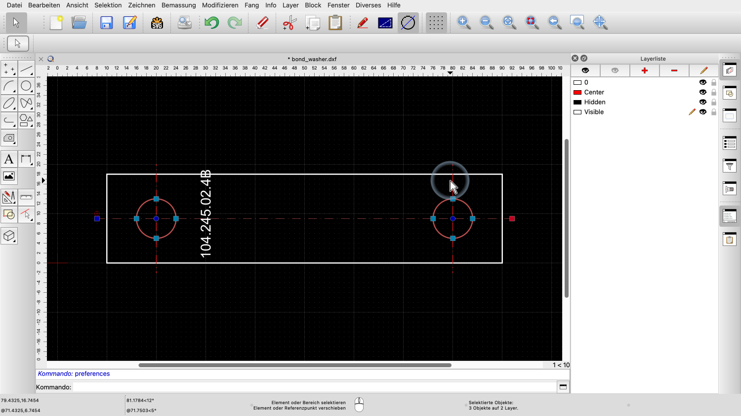 Die Mittellinie und die beiden Kreise befinden sich jetzt in der Zwischenablage von QCAD.