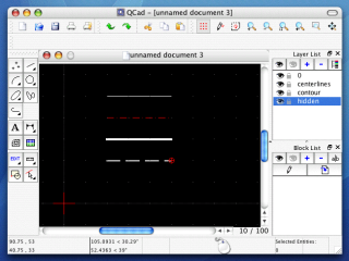 Las siguientes tablas muestran la interfaz de usuario de QCAD en diferentes sistemas operativos.