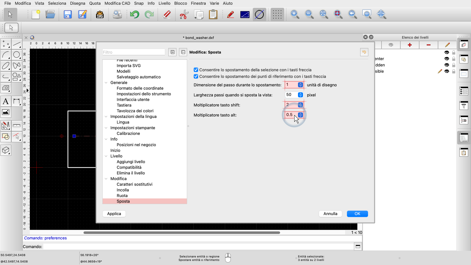 Possiamo anche configurare i fattori da applicare quando tiene premuto il tasto shift o alt insieme ai tasti freccia.