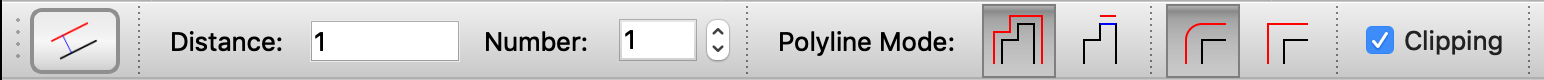 Modify > Offset (with Distance) - The options toolbar of the offset tool is shown at the top with the last used value displayed for the offset distance (here "1"):