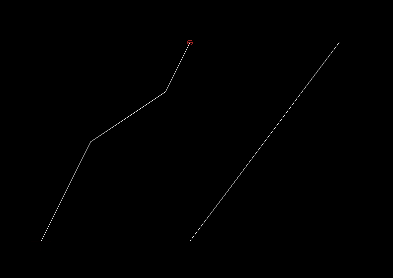 Here we have a straight line composed of four individual segments, which were then turned into a polyline. To the right is a normal straight line.