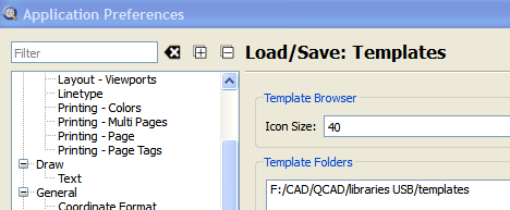 I have the choice between the folders regarding "Application preferences" "Load/Save: Templates" list and an NON existing default folder "C:/Programme/QCAD pro 3.1.4/libraries/templates".