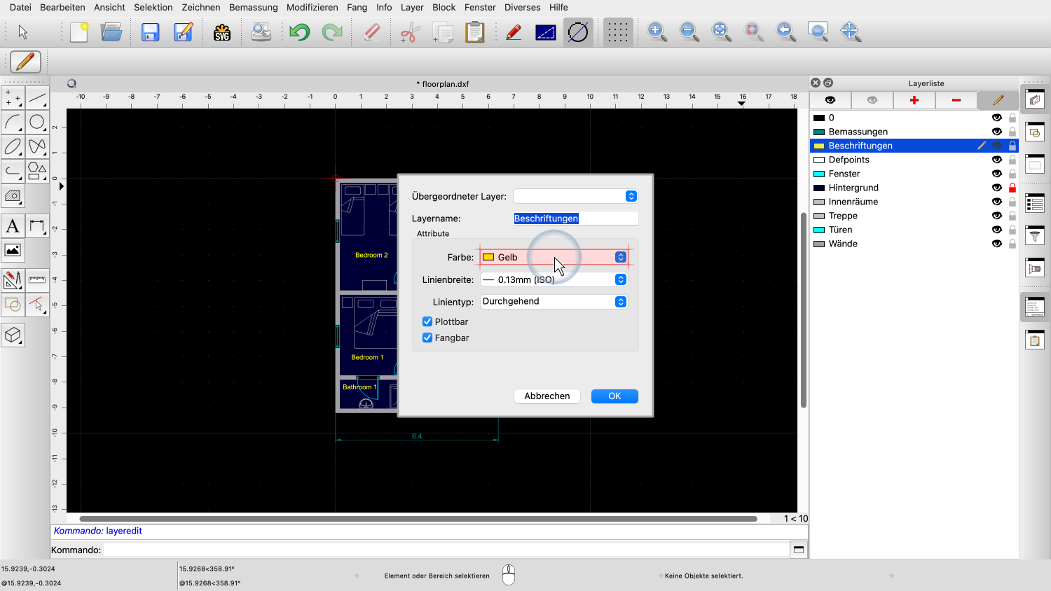 Der Grundgedanke hinter Layern ist, für jede Gruppe von Objekten, die in der Zeichnung die gleiche oder eine sehr ähnliche Funktion haben, einen eigenen Layer zu erstellen.