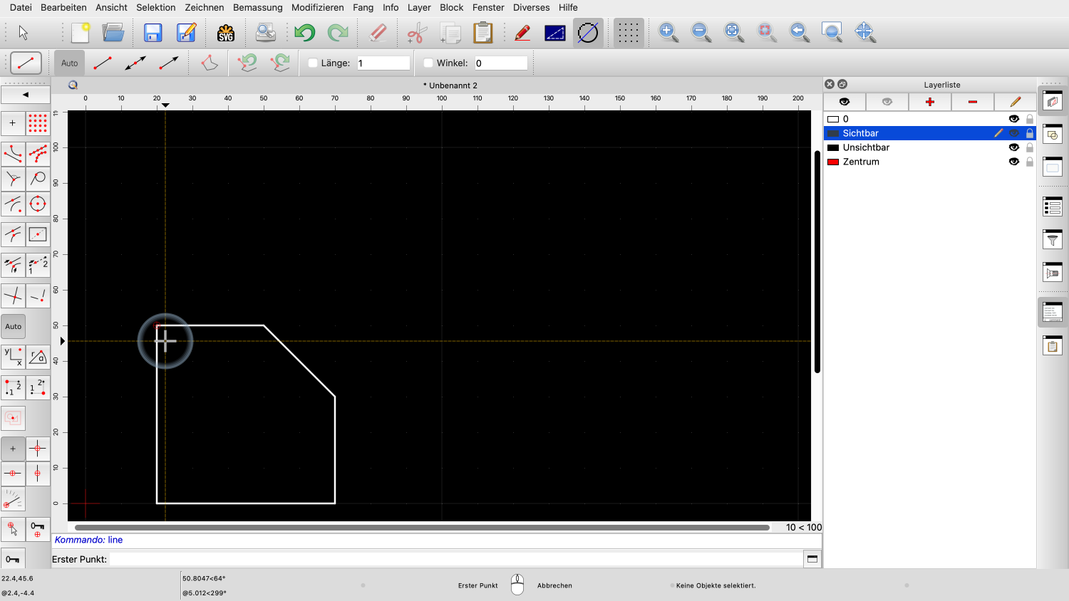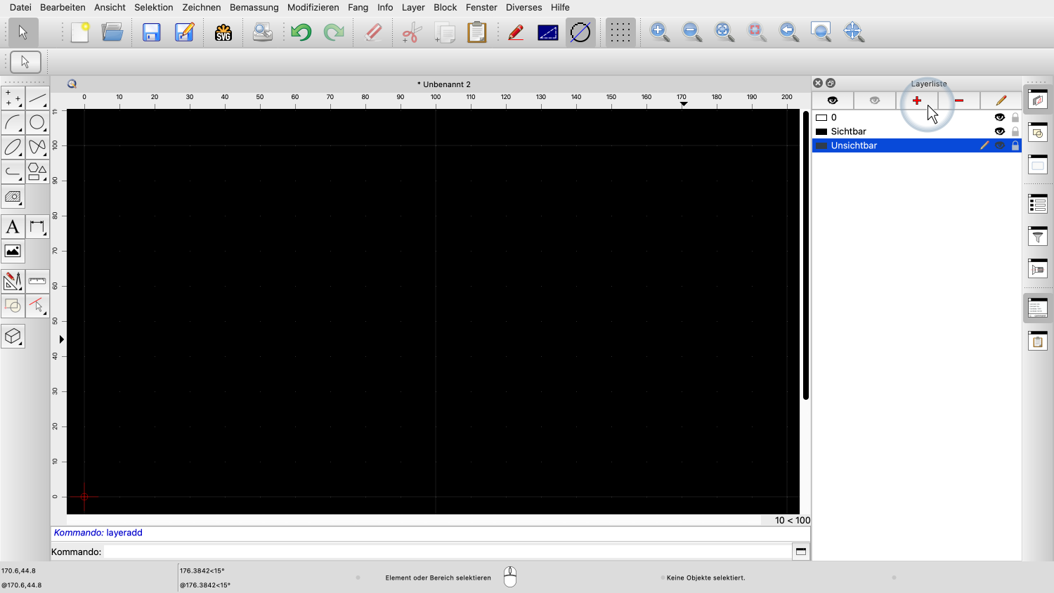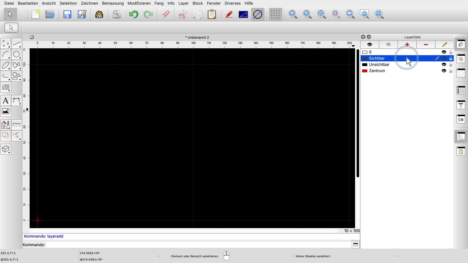 Wie allgemein empfohlen, lassen wir Layer 0 leer und erstellen unsere eigenen Layer für unsere Zeichnung.