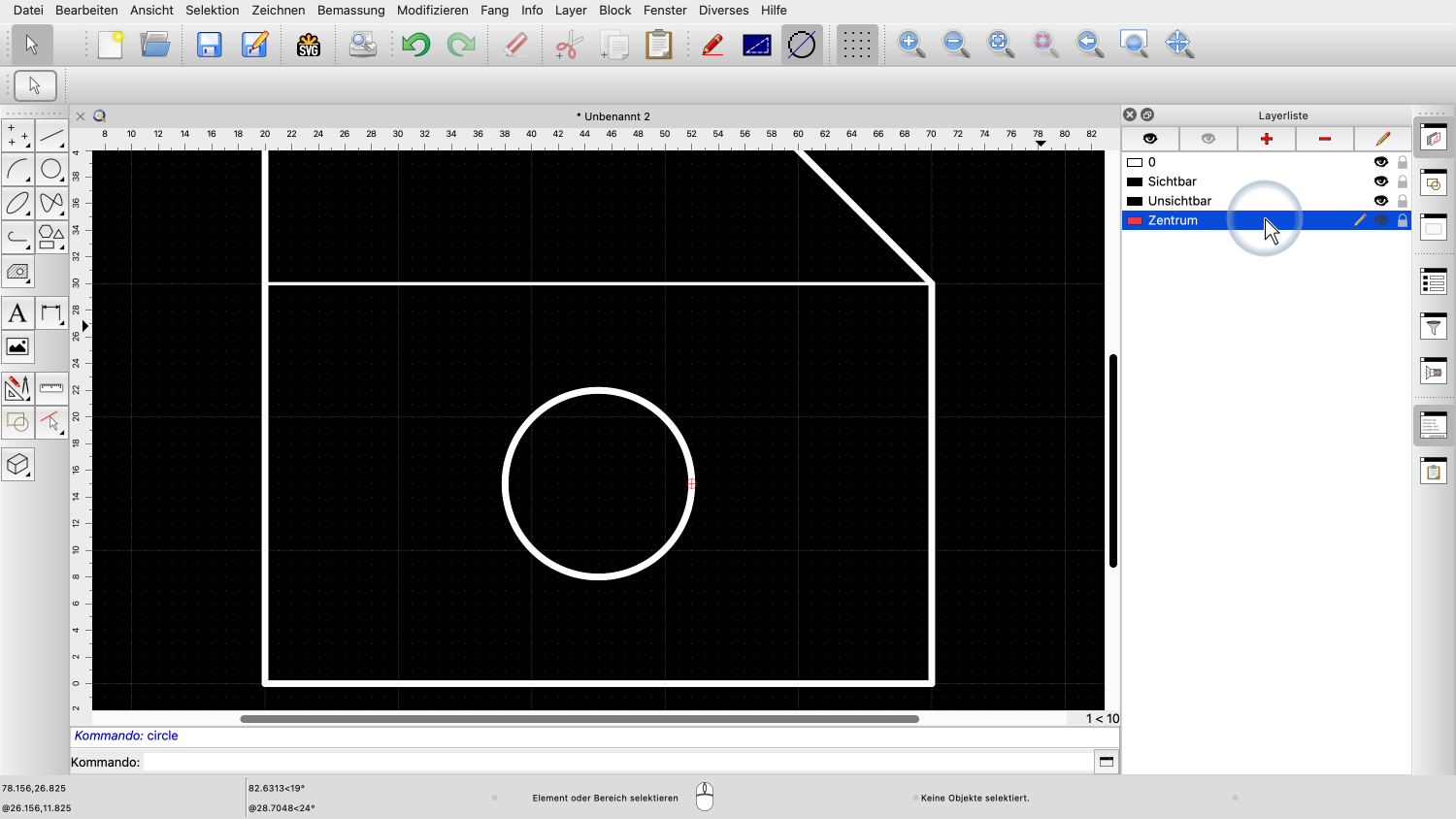 Wir fügen den Kreis auf dem Layer "Sichtbar" hinzu, da er eine sichtbare Kante einer Bohrung darstellt.