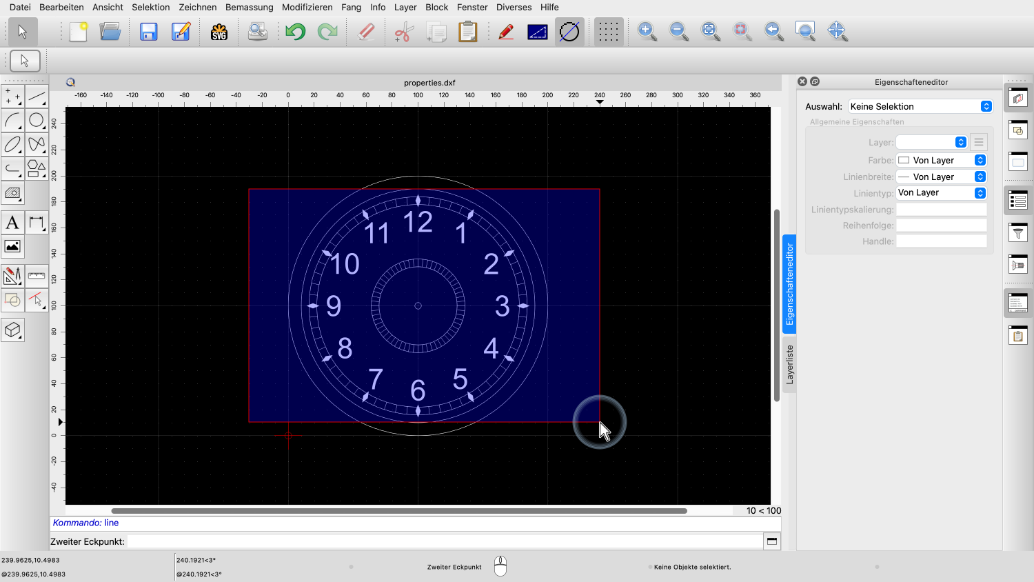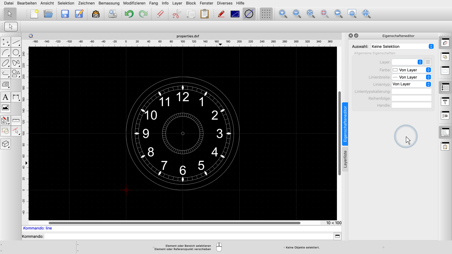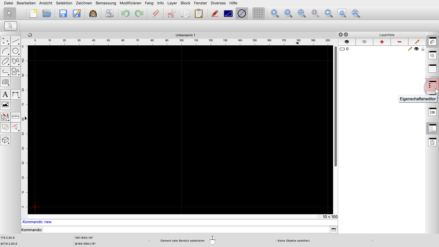 Bevor wir den Eigenschafteneditor verwenden können, muss in unserer Zeichnung mindestens ein Objekt ausgewählt sein.