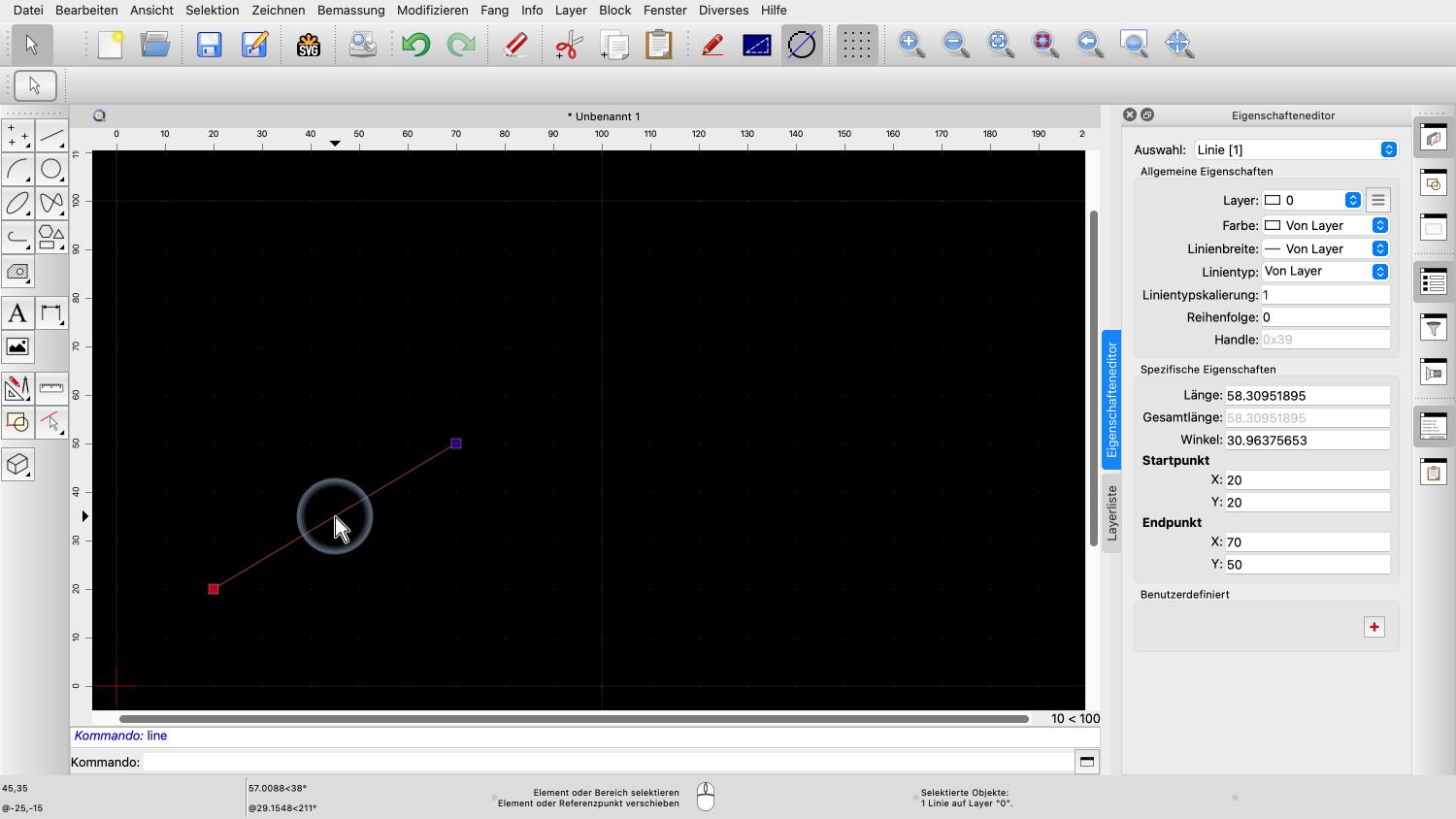 Wir können zum Beispiel die Länge der Linie auf 80 Zeichnungseinheiten einstellen.