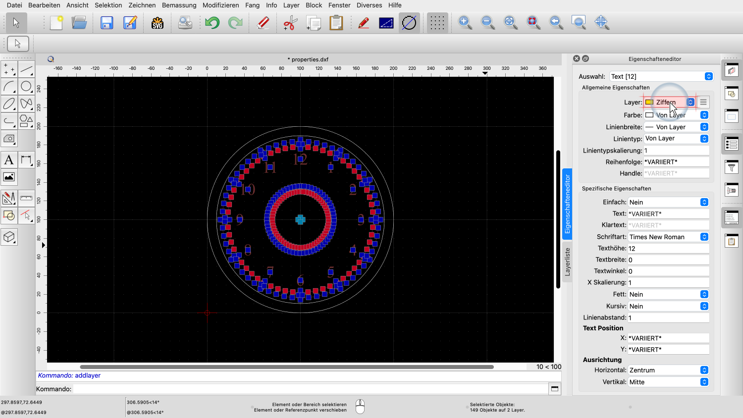 In dieser Zeichnung wollen wir einige Eigenschaften aller Texte ändern.