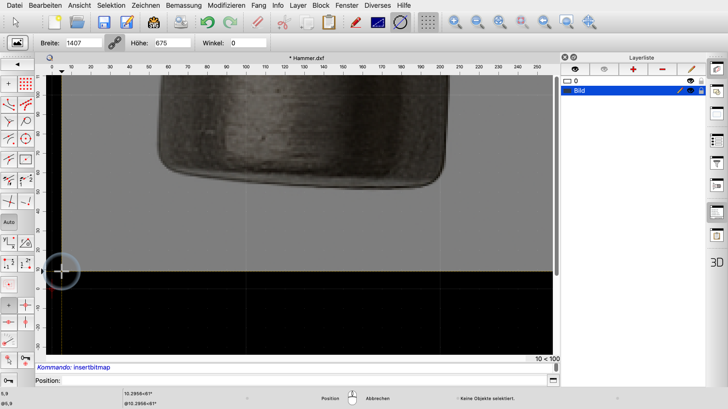 Wir können das Bild nun in unserer Zeichnung platzieren, mit der linken unteren Ecke als Referenzpunkt.