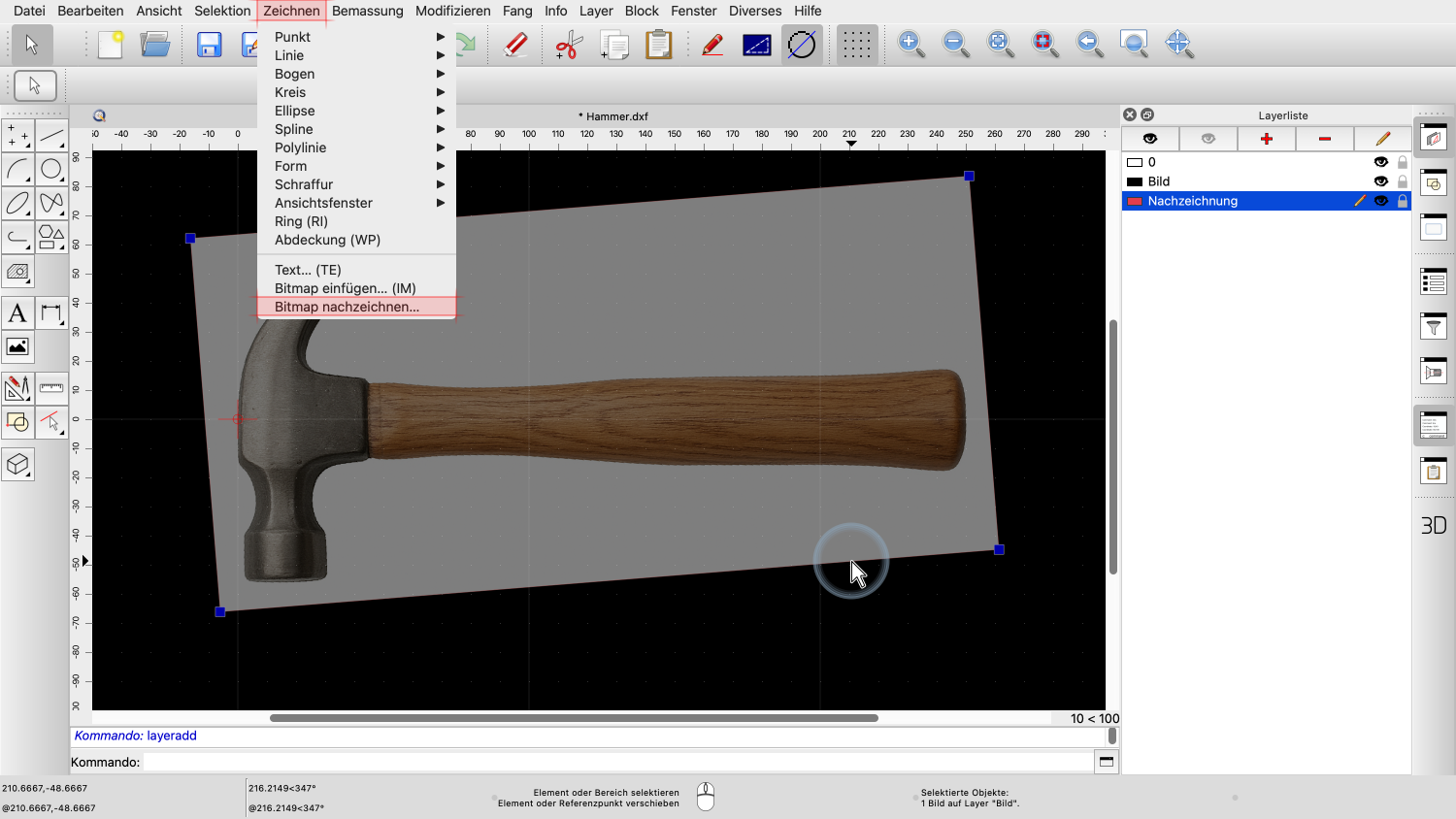 Das Nachzeichnen von Bildern kann nützlich sein, um technische Zeichnungen aus einem Scan oder Foto zu rekonstruieren oder um Skizzen zu vektorisieren.