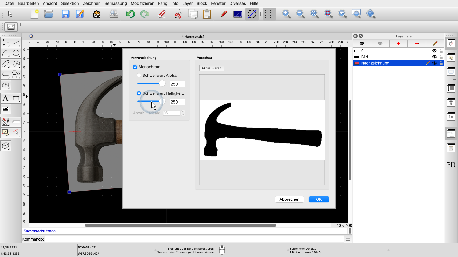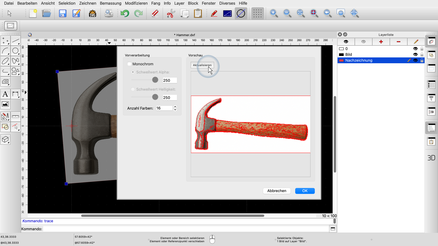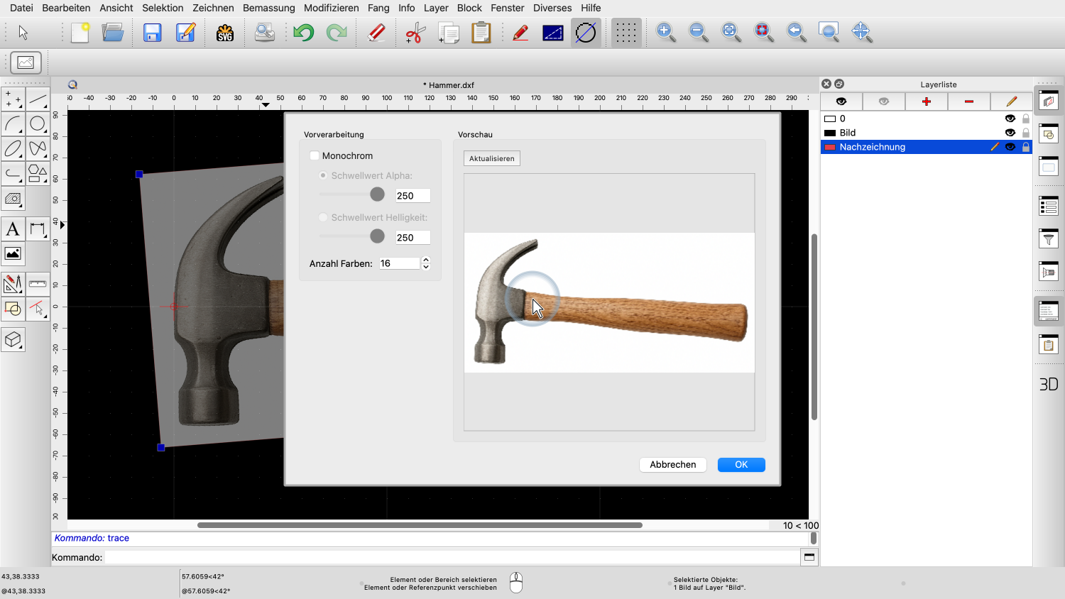 Wir klicken auf OK, um zu bestätigen und das Bild in unserer Zeichnung nachzuzeichnen.