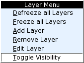 Hladiny mohou být ovládány buď z menu 'Hladina', nebo ze