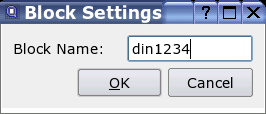 Diese Funktion erstellt einen neuen leeren Block. Der Block Dialog wird angezeigt in dem Sie einen Namen für den Block eingeben können (Abbildung 18). Wenn Sie einen Block aus bestehenden Objekten erstellen wollen, benutzen Sie stattdessen bitte die Funktion "Block erstellen".