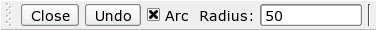 Beachten Sie: Falls Ihre Polylinie Bogen-Segmente enthält, aktivieren Sie die Option 'Kreisbogen' und geben Sie den Radius ein in der Optionen Werkzeugleiste bevor Sie den Endpunkt des Bogen-Segments setzten. Der Bogen schliesst tangential an das letzte Segment an.