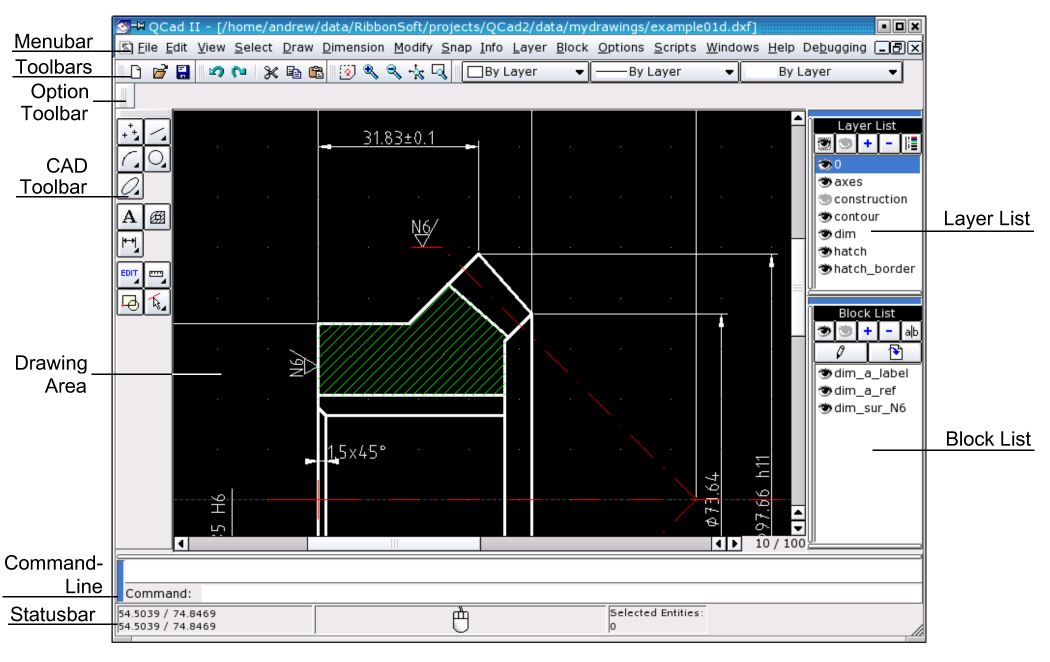 A QCad grafikus felhasználói felülettel (GUI)