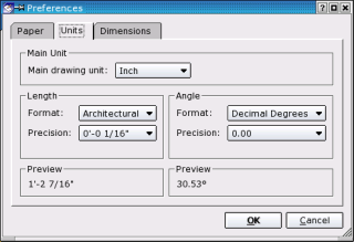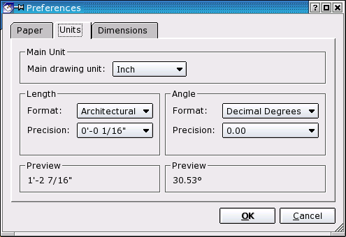 19 Aktuális rajz beállításaiA rajz beállításai ablakban megadott értékek csak az aktuális rajzra érvényesek. Itt változtatható a mértékegység, papírméret, méretháló jellemzői, stb. Szerkesztés - Aktuális rajz beállításai PapírA papír beállításai csak a nyomtatás során érdekesek. Az itt megadott méretet és tájolást használja a program a nyomtatási kép elkészítéséhez (68 ábra). Ábra 68: Az aktuális rajz papír beállításai. MértékegységekA kiválasztott mértékegységet és formátumot használja a program a státuszsorban, a méretvonalak felirataiban, és elemek nagyításához azok beszúrásakor. További információkat kaphat a Melléklet - Mértékegységek fejezetben, valamint megtekintheti az elérhető mértékegységeket és formátumokat (69 ábra). Ábra 69: Mértékegység és formátuma. MérethálóEzen a lapon a méretvonalak, méret segédvonalak, méretnyilak és a méretszámok beállításain változtathat (70 ábra). Ábra 70: Méretháló beállításai.
