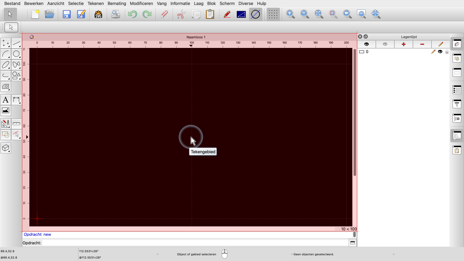 In deze neutrale toestand kunnen we de tekening bekijken en een aantal basiswijzigingen doorvoeren, zoals objecten selecteren en verwijderen.