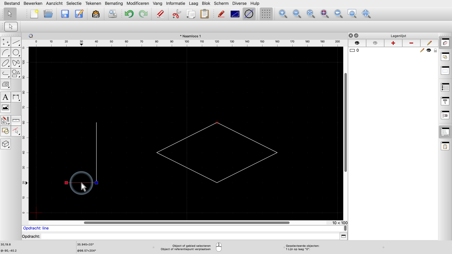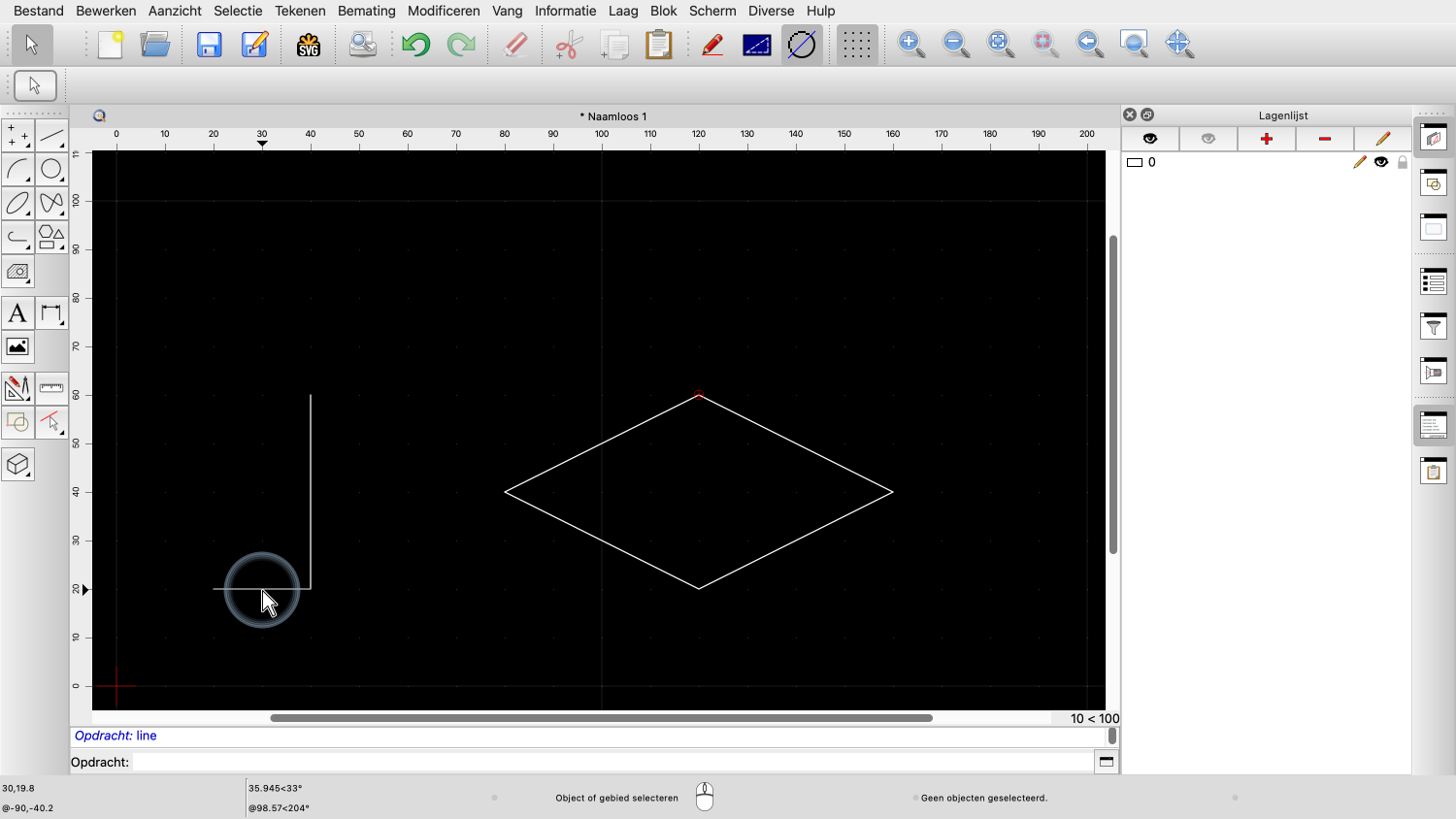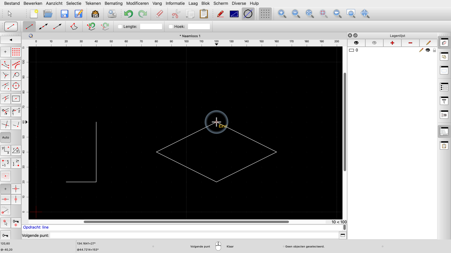 De eerste klik in het tekengebied bepaalt het beginpunt van de eerste lijn.