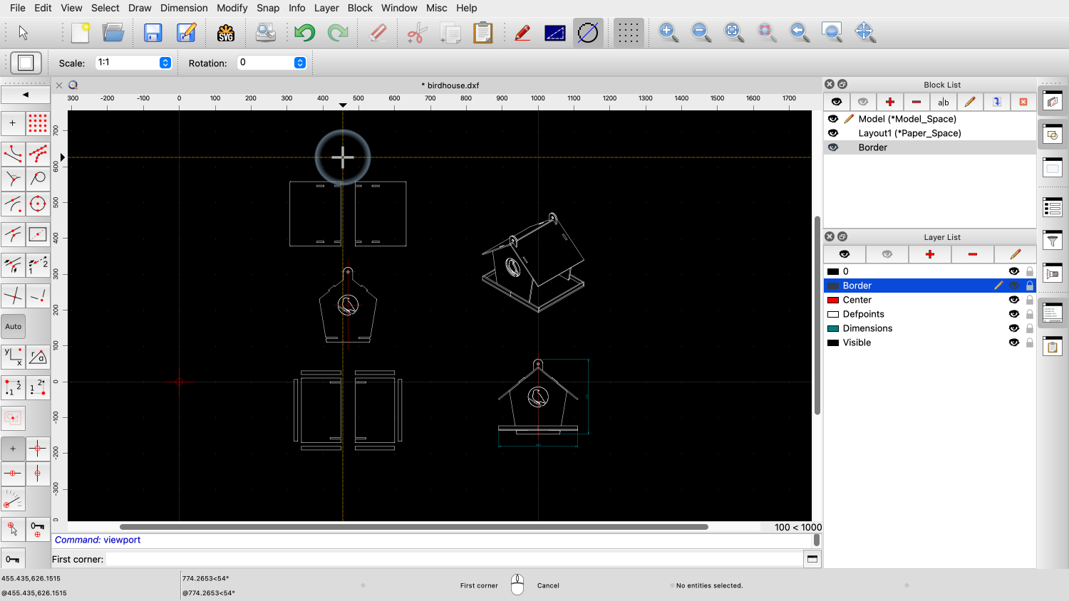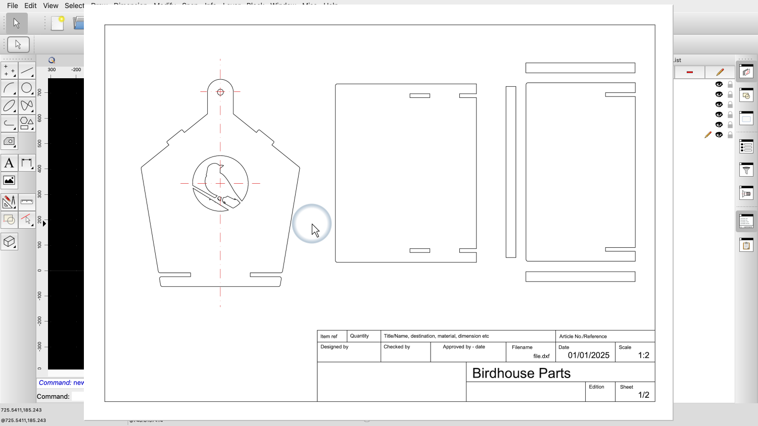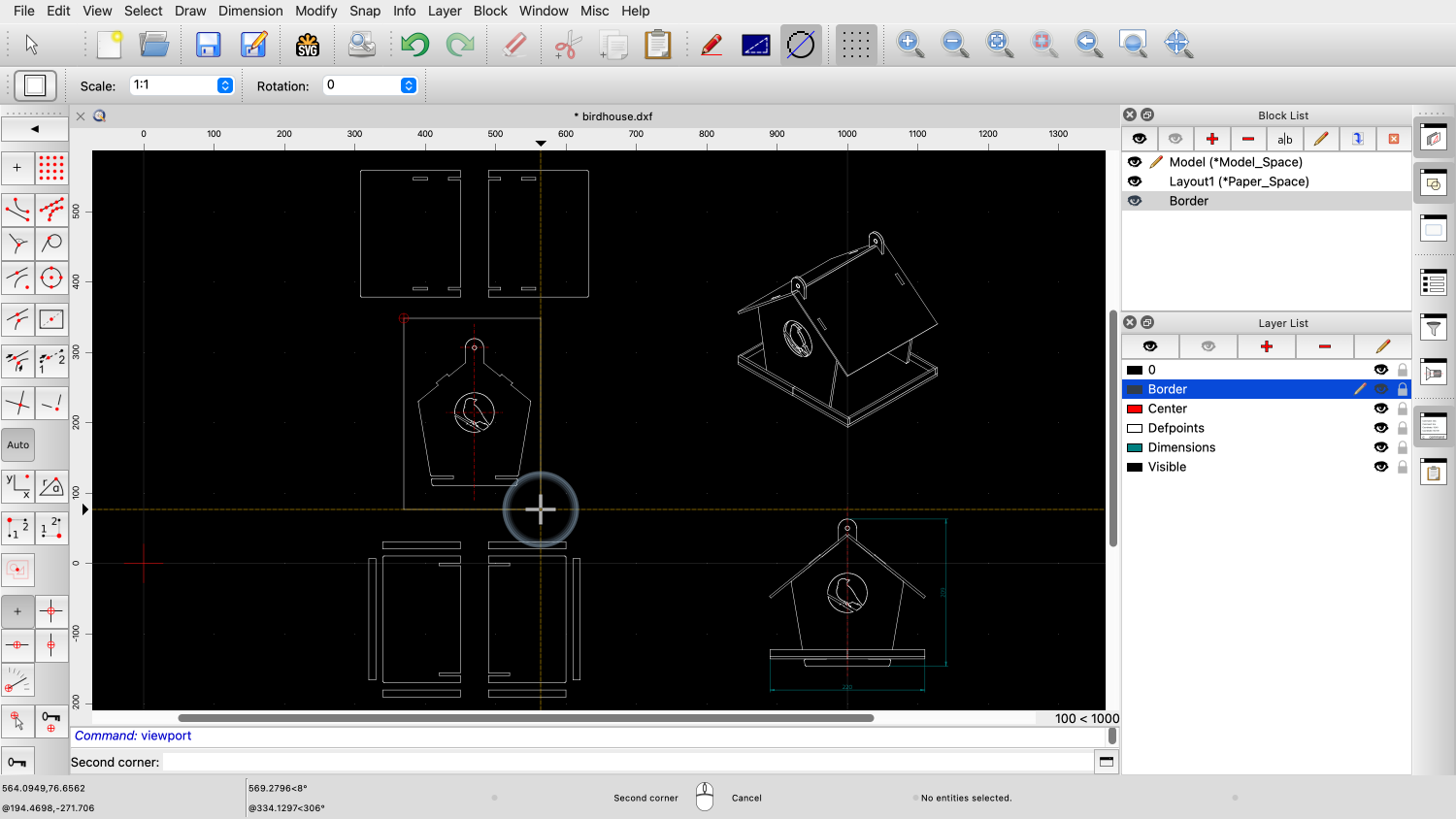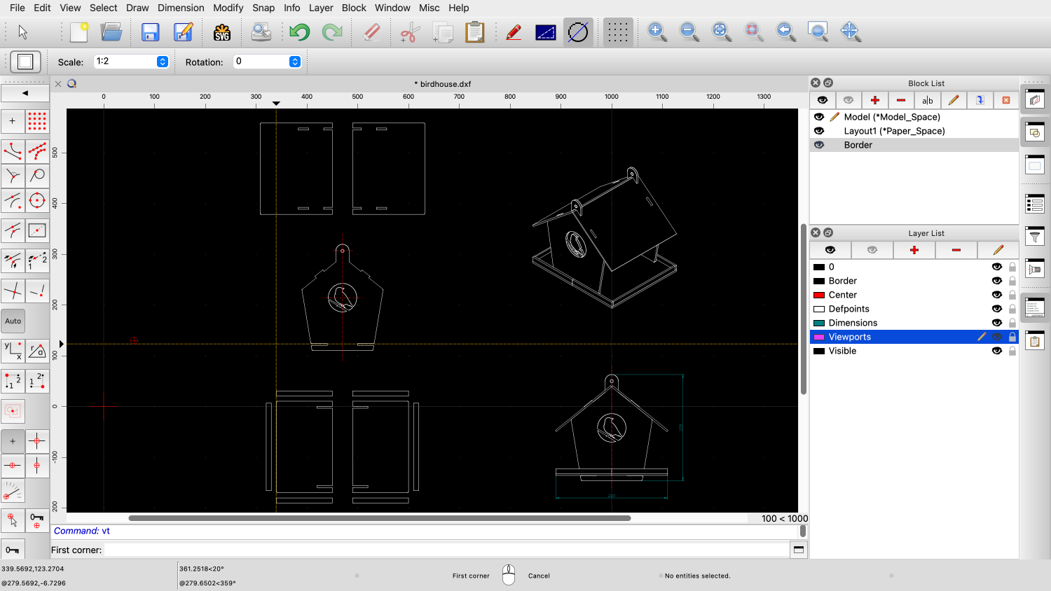 birdhouse.dxf We explore how to arrange parts of a drawing