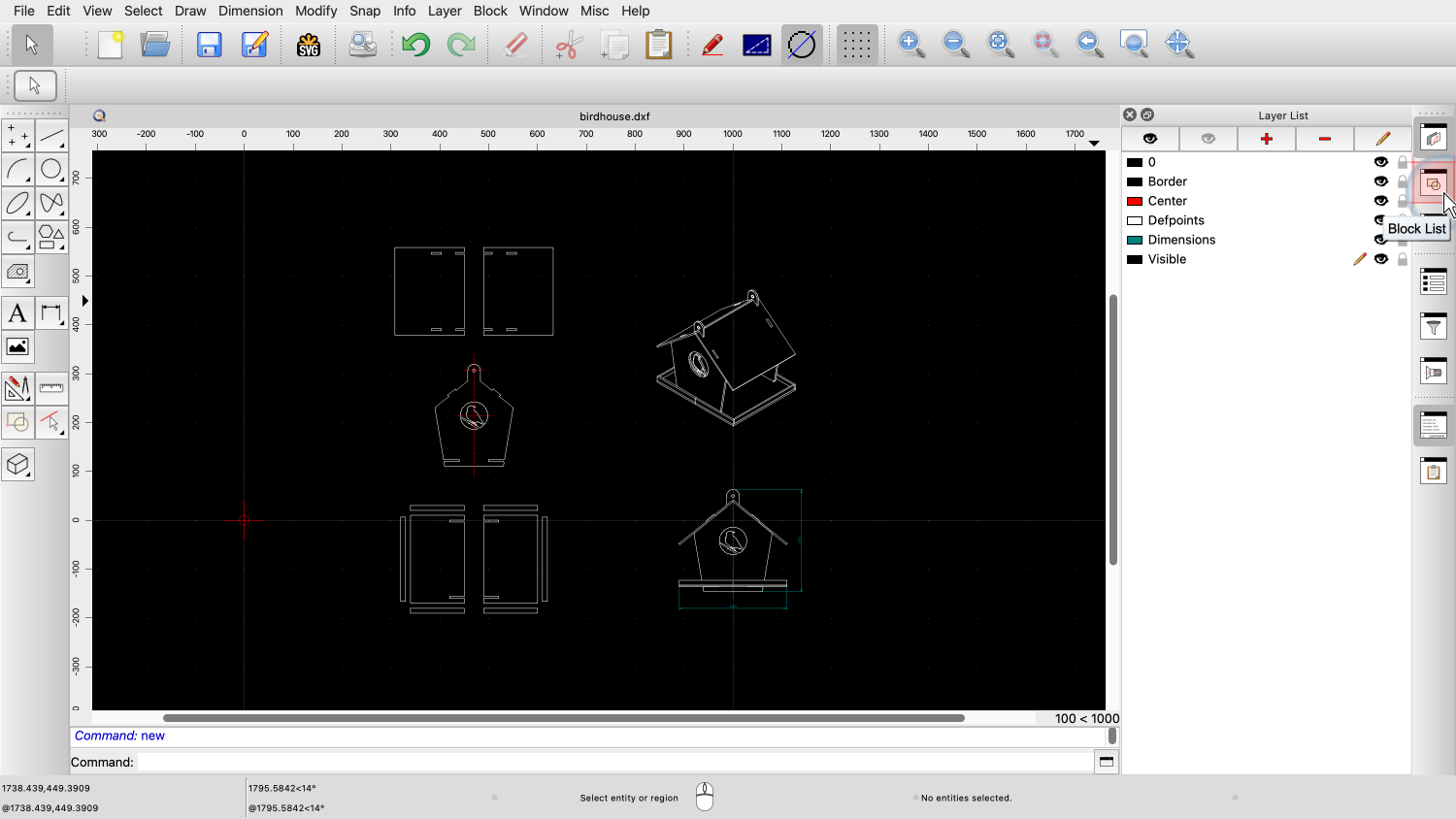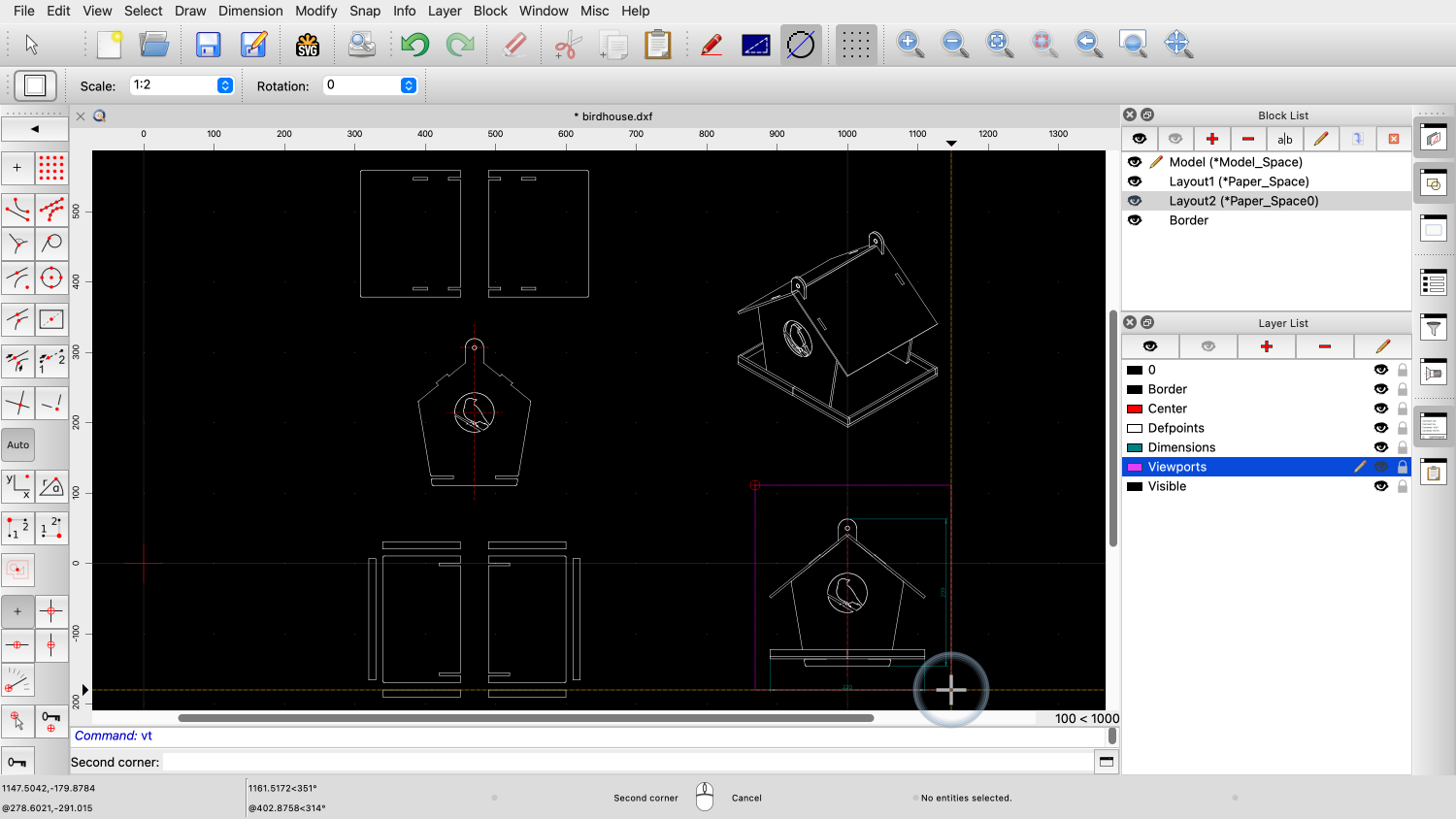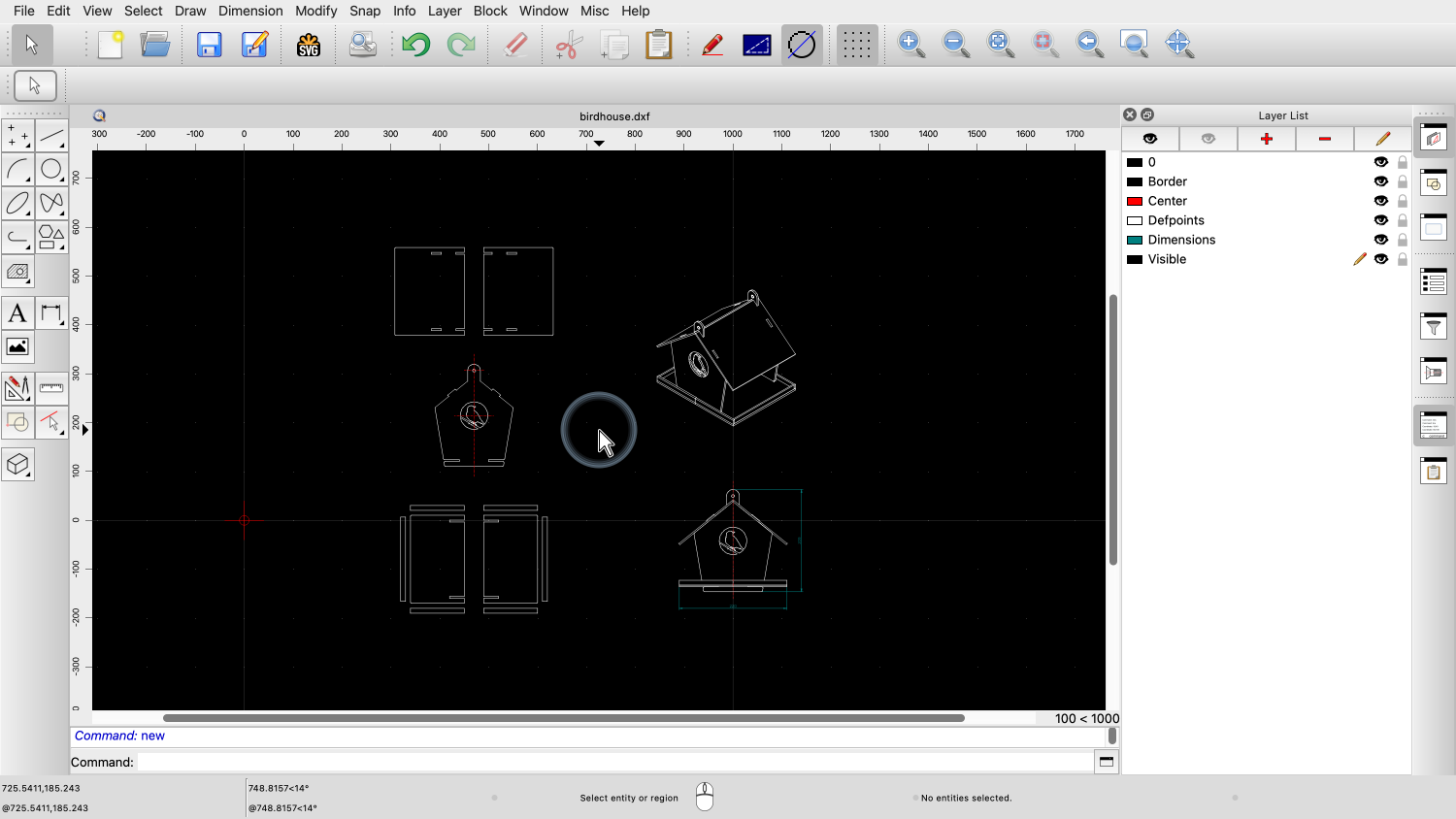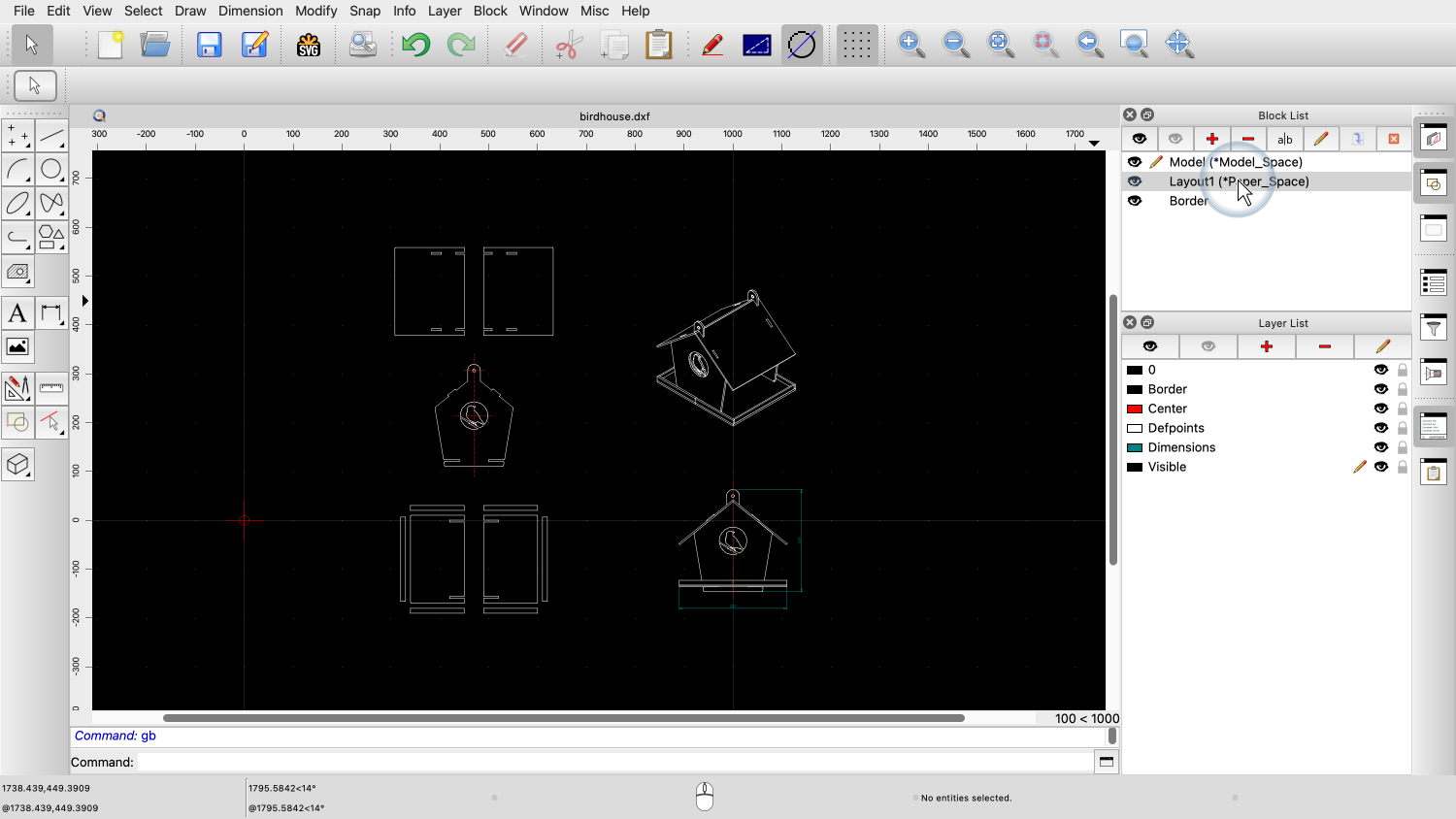 birdhouse.dxf We explore how to arrange parts of a drawing