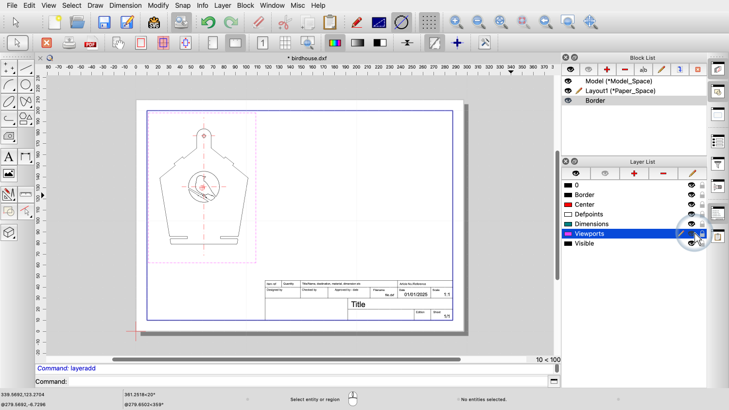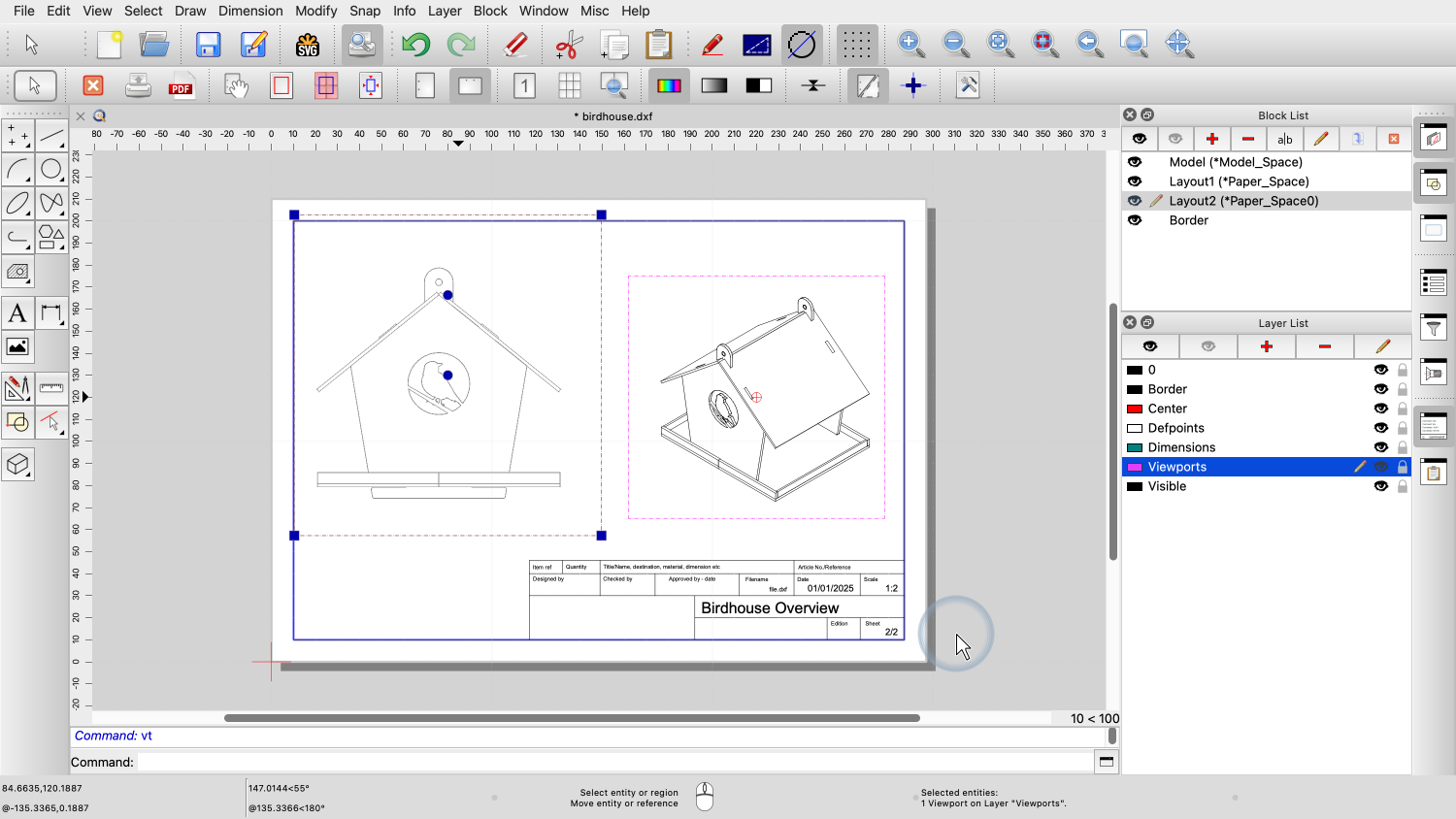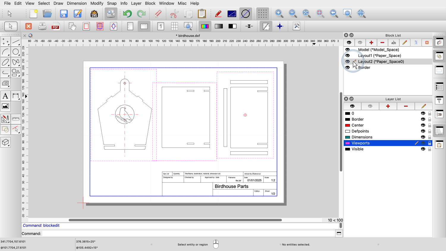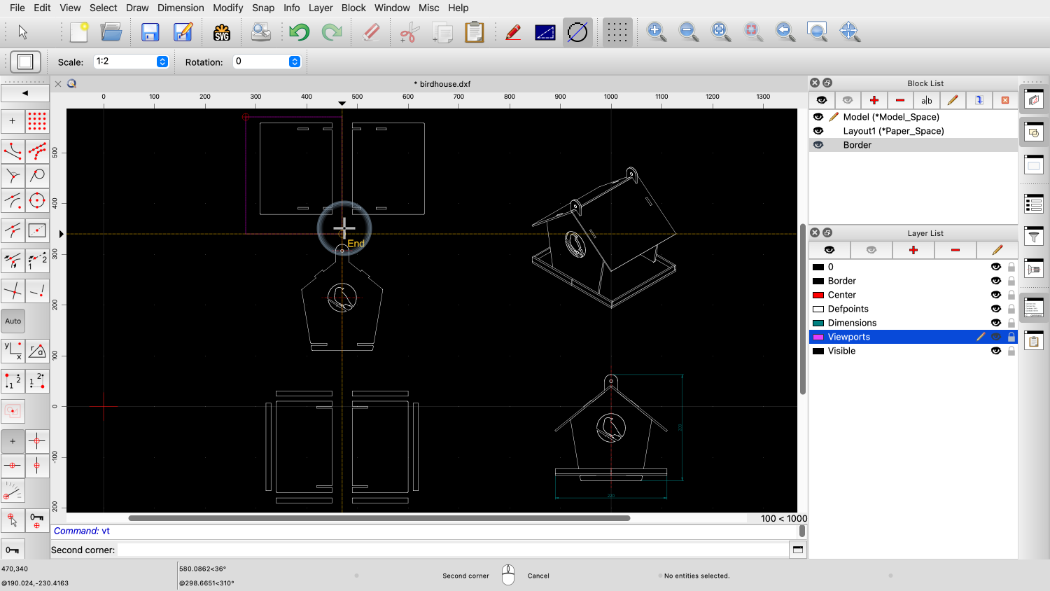 birdhouse.dxf We explore how to arrange parts of a drawing