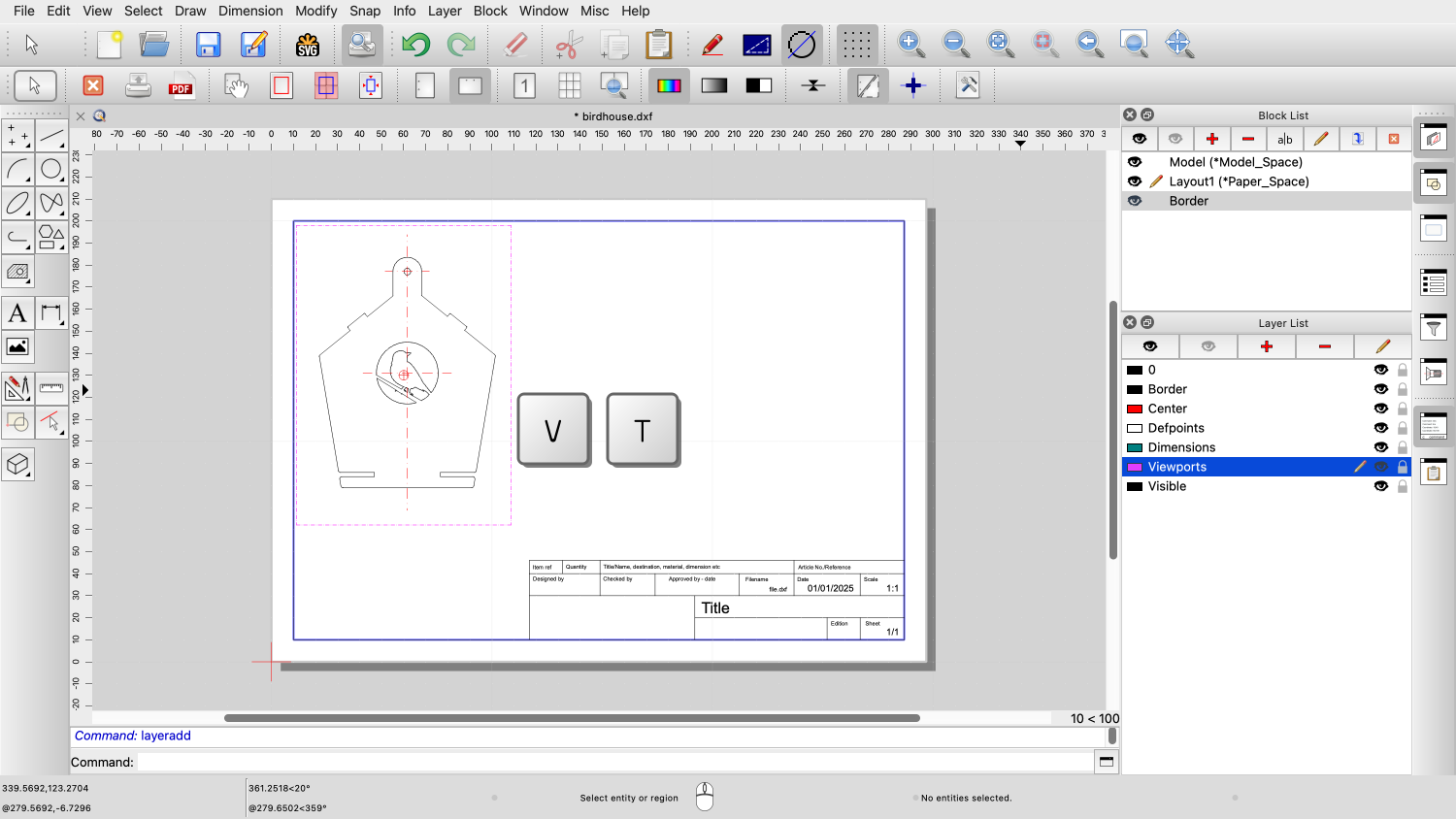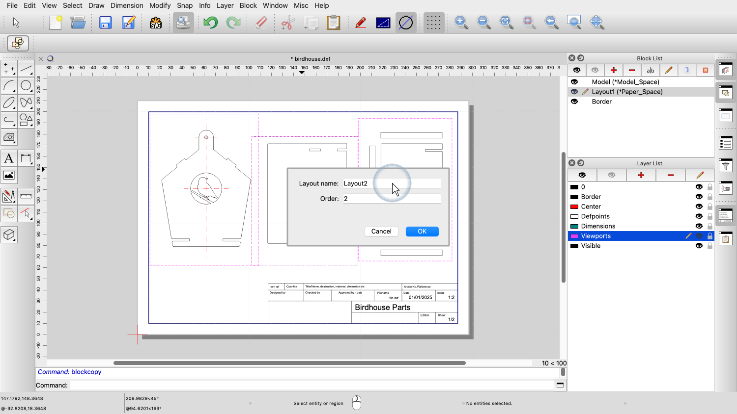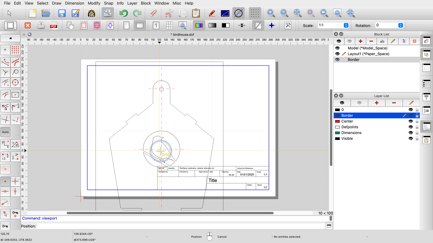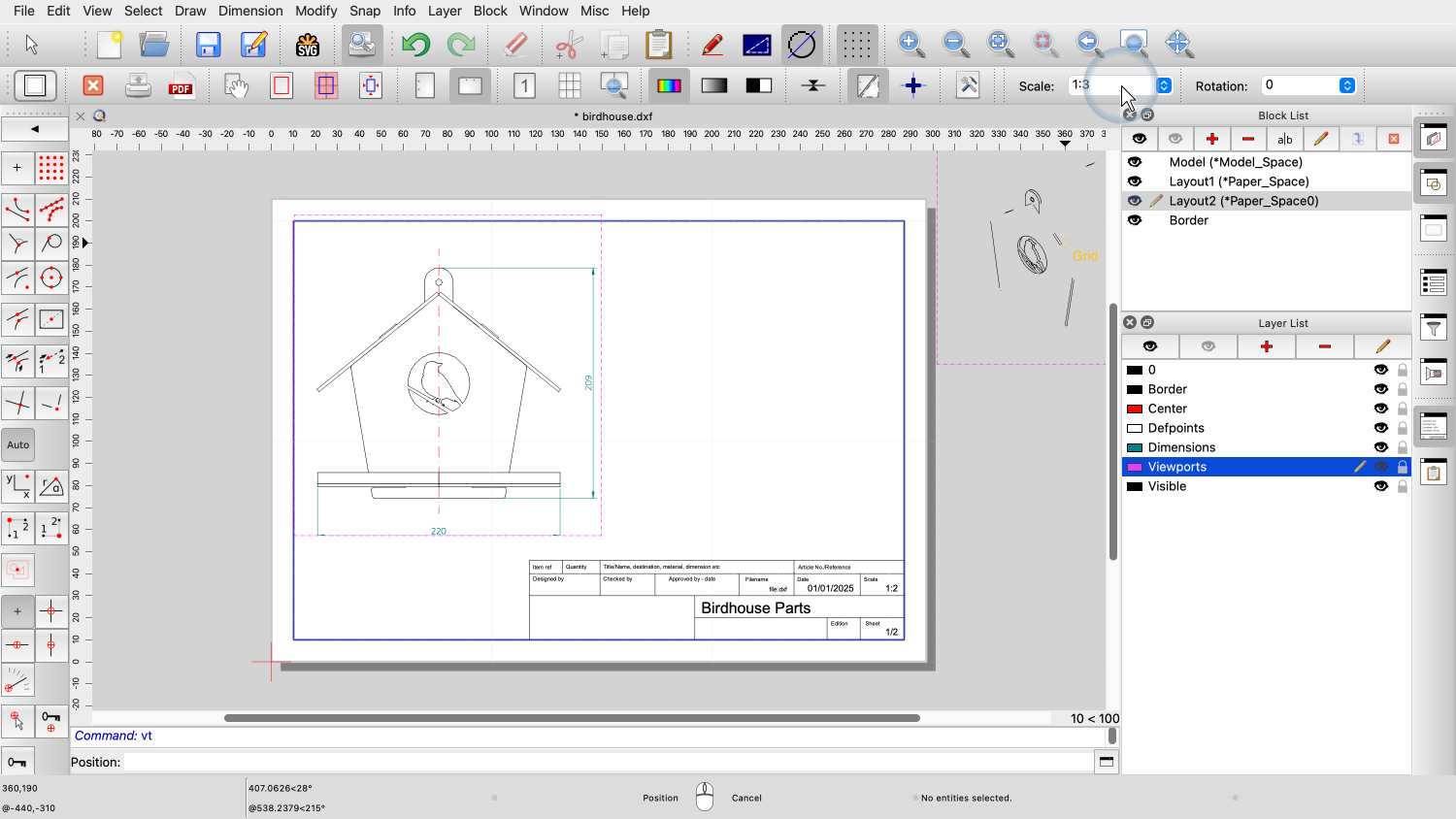birdhouse.dxf We explore how to arrange parts of a drawing
