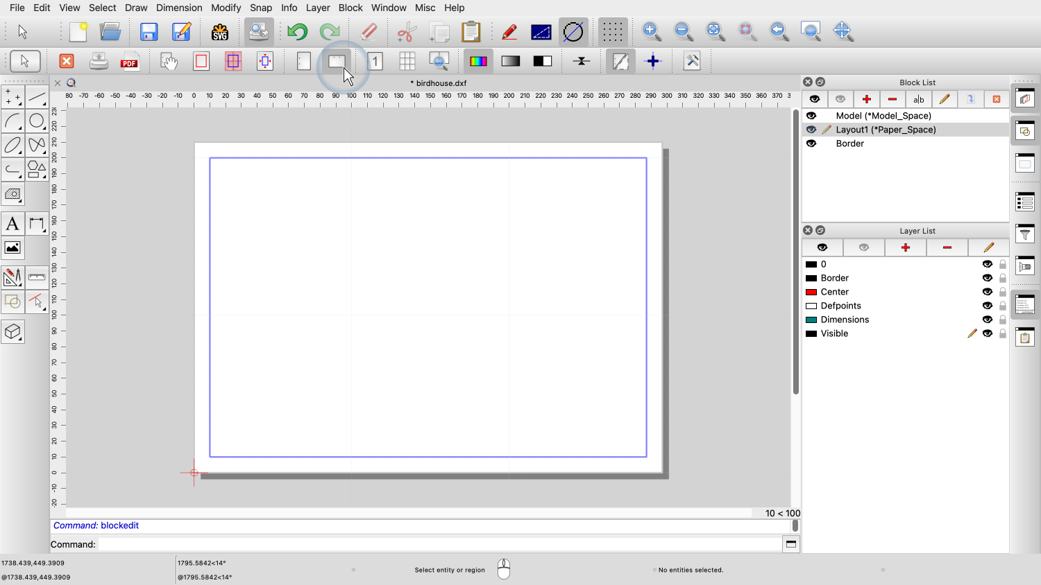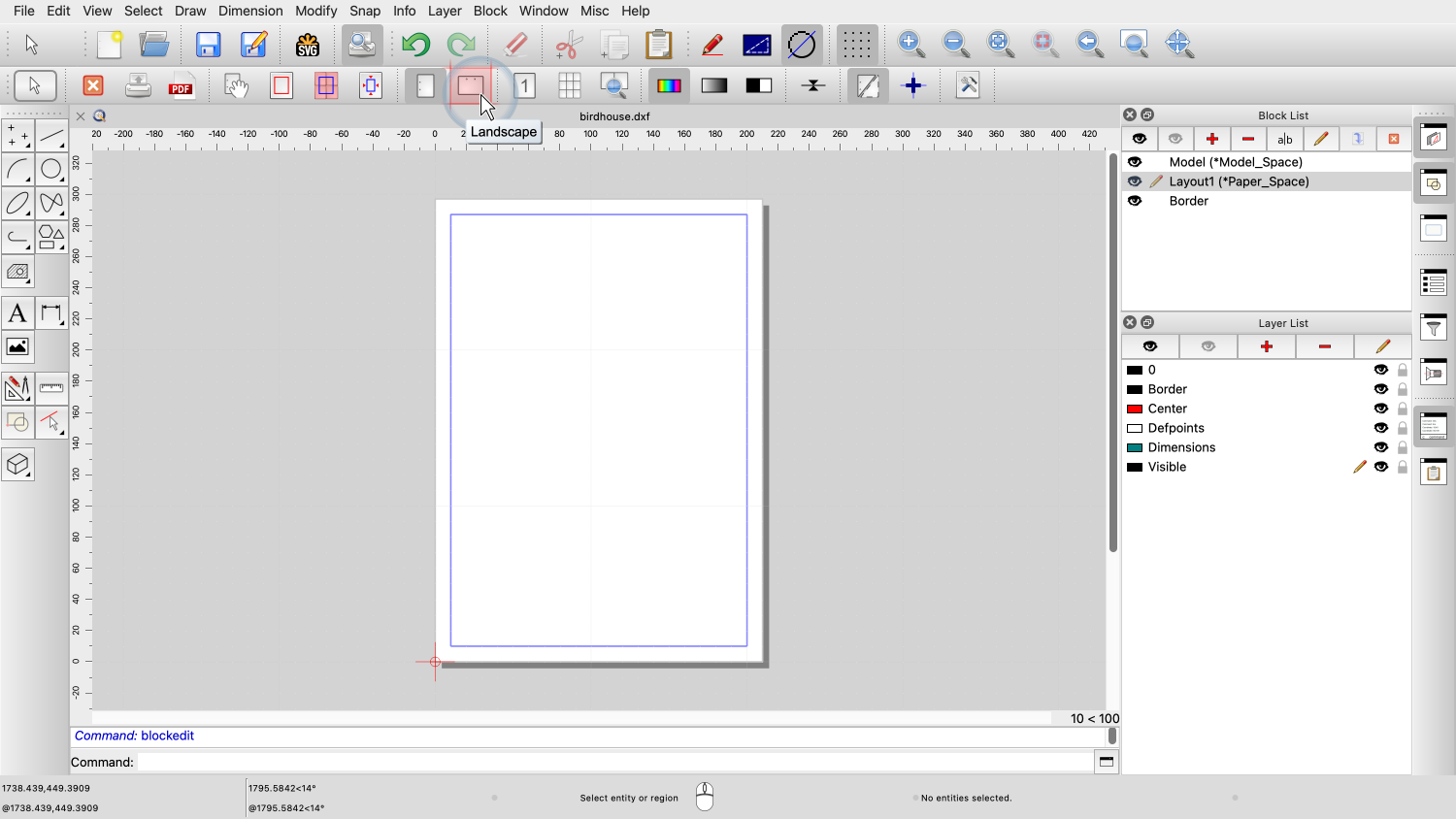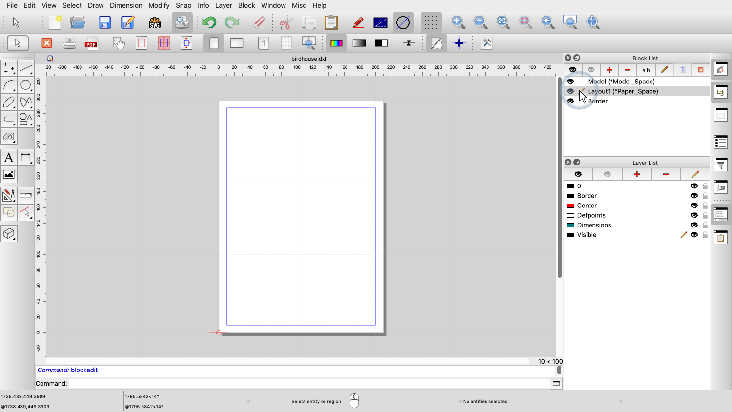 block. It is called "Layout1". Depending on our version of QCAD, we can also