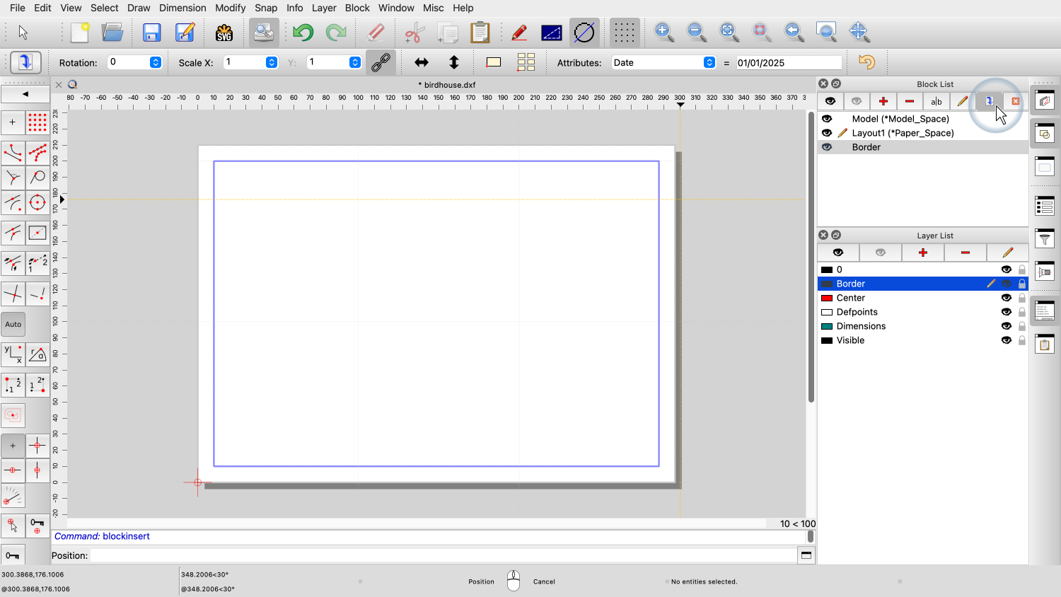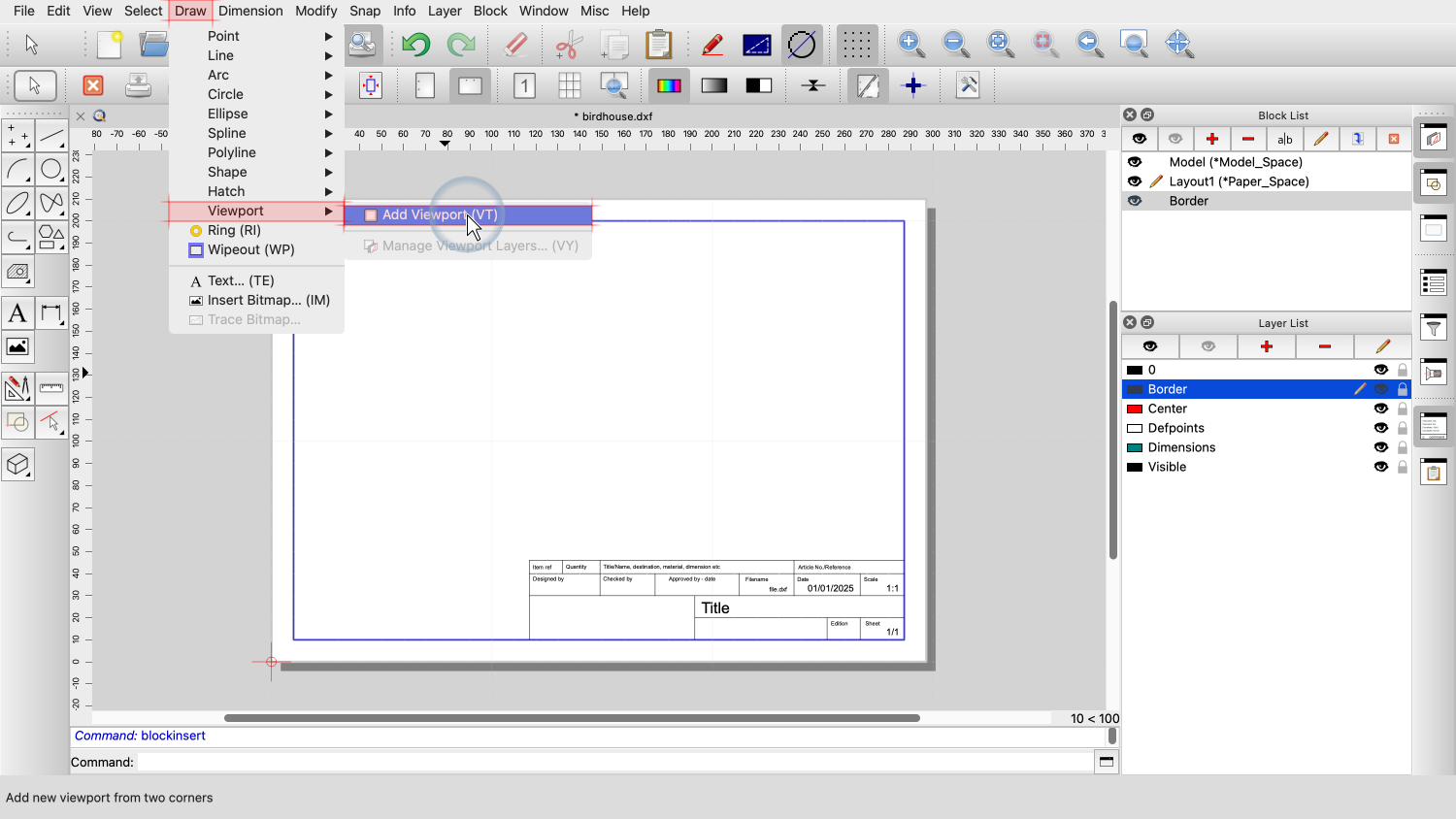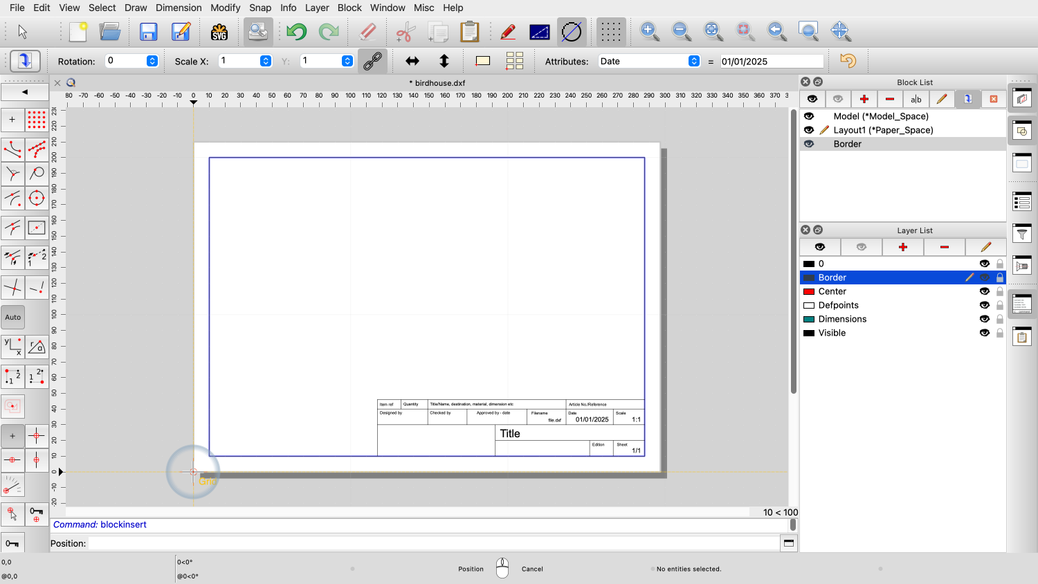 block. It is called "Layout1". Depending on our version of QCAD, we can also