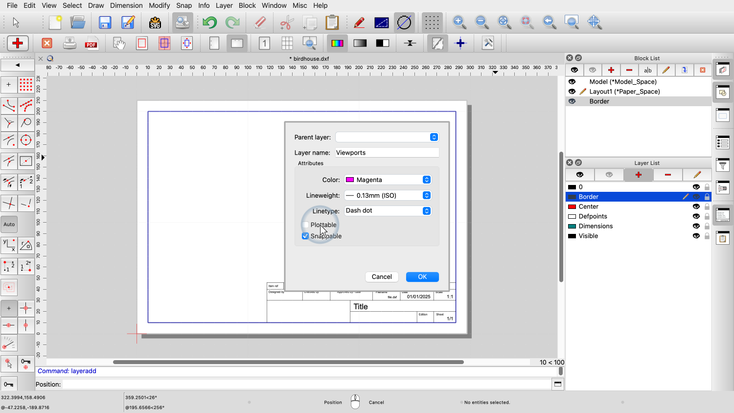 dedicated layer for viewports. We create a layer called Viewports. We give the layer a unique and distinguishable