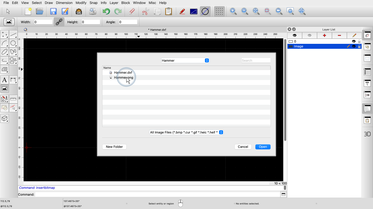 the left to insert an image. QCAD shows the file dialog to let us choose an