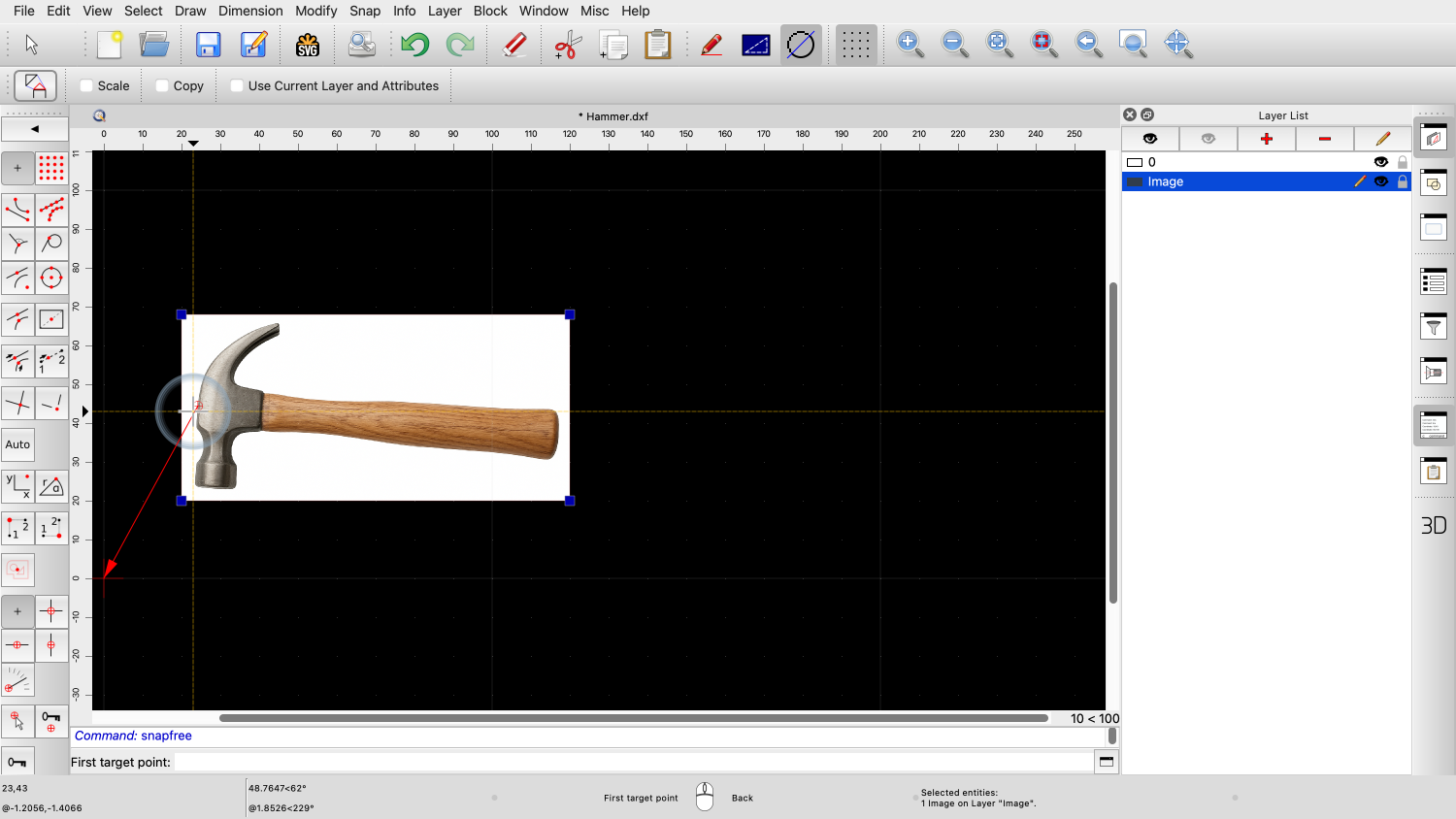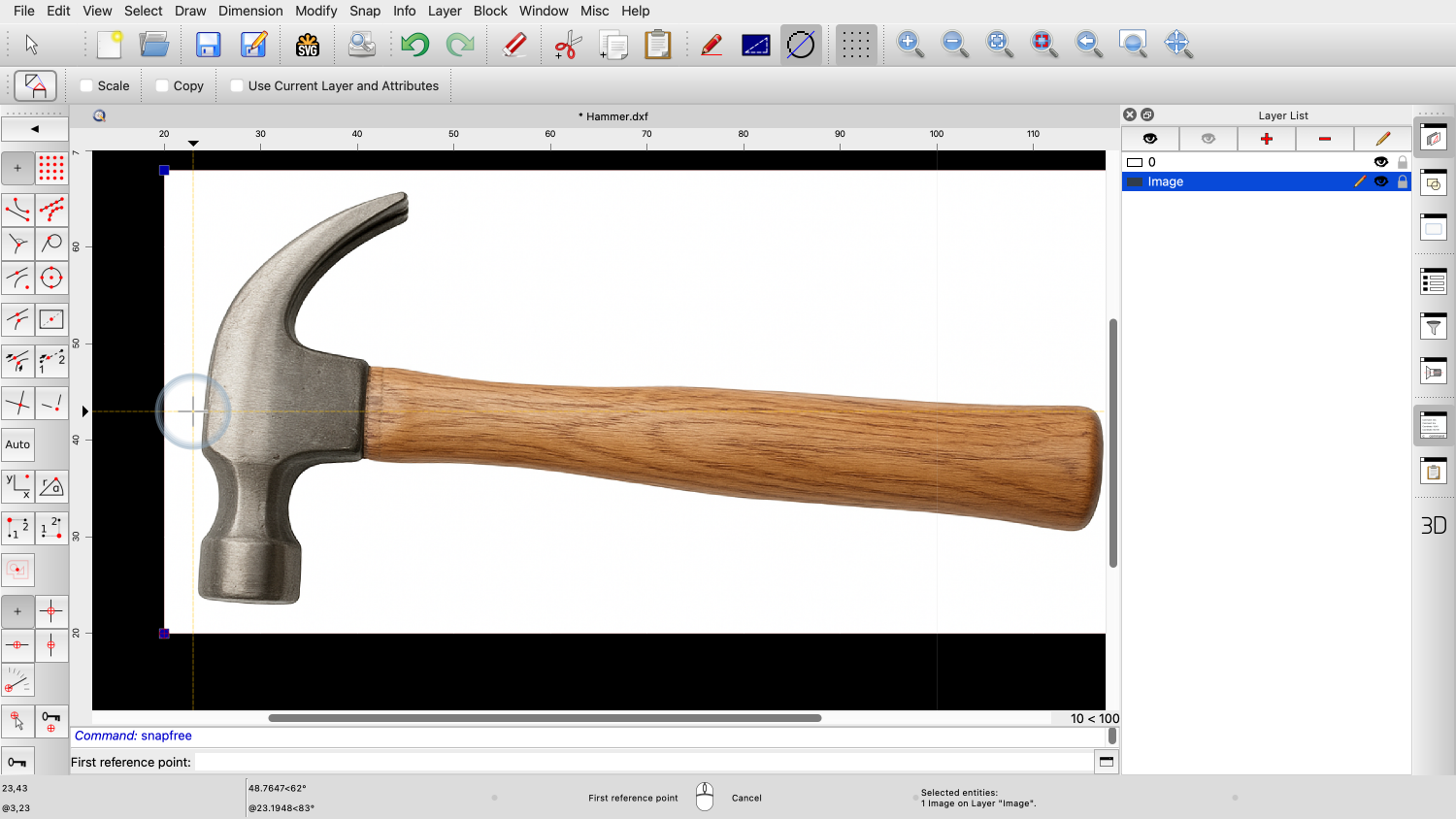 drawing area with a width of exactly 100 drawing units. We place the image into our drawing with a