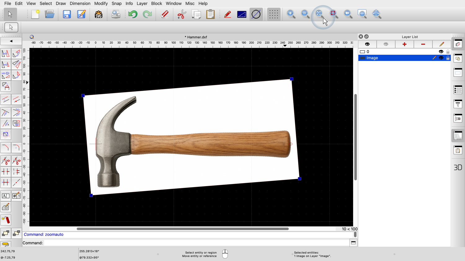 image as desired. We use the bitmap tool in the CAD toolbar at