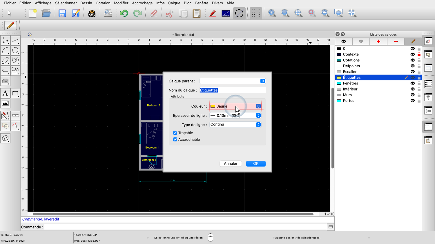 Il est ainsi facile de modifier l'apparence de toutes les entités d'un même calque en une seule fois.