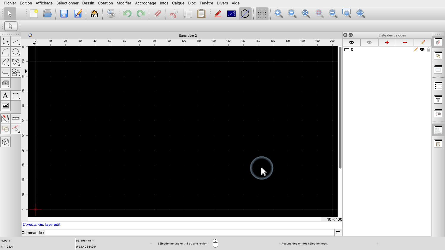 Comme il est généralement recommandé, nous laissons le calque 0 vide et créons nos propres calques pour notre dessin.