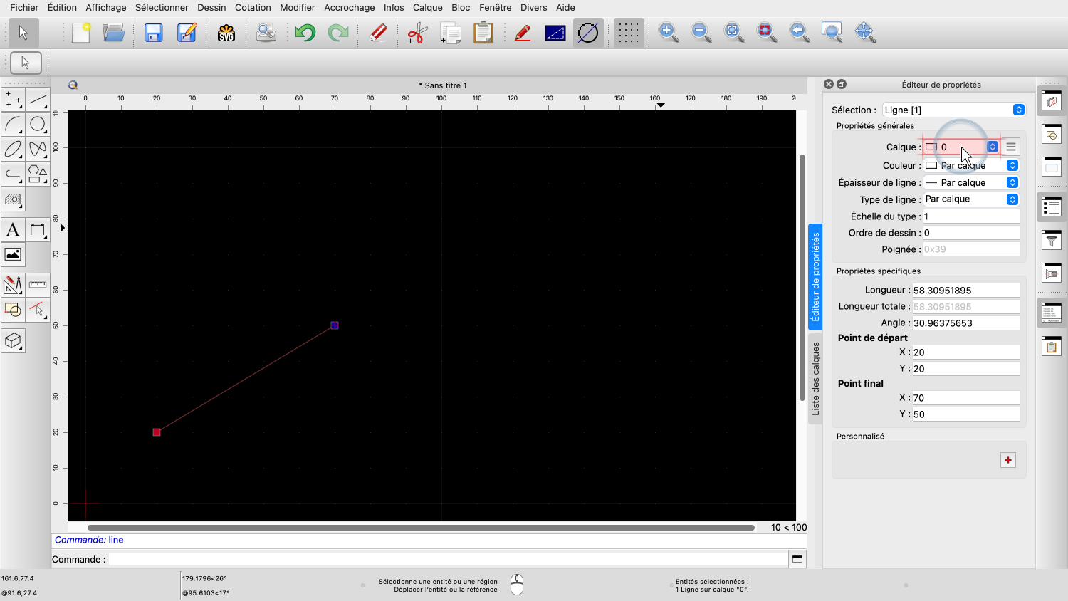 Nous pouvons également constater que cette ligne se trouve sur le calque "0".