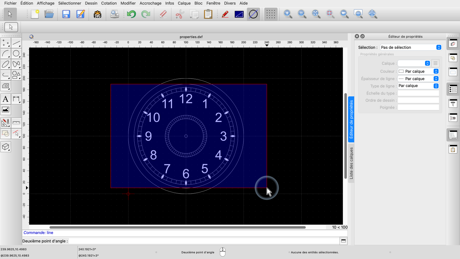 Avant de pouvoir utiliser l'éditeur de propriétés, notre dessin doit comporter au moins une entité sélectionnée.