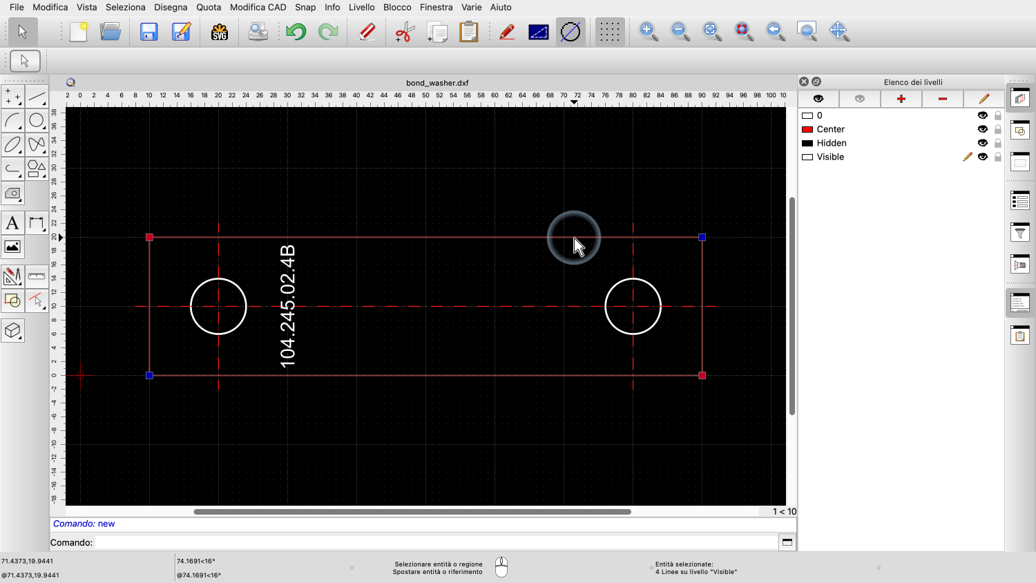 Poiché le quattro entità che vogliamo selezionare sono tutte collegate, come spesso accade, QCAD offre anche un modo più semplice per selezionare queste entità.